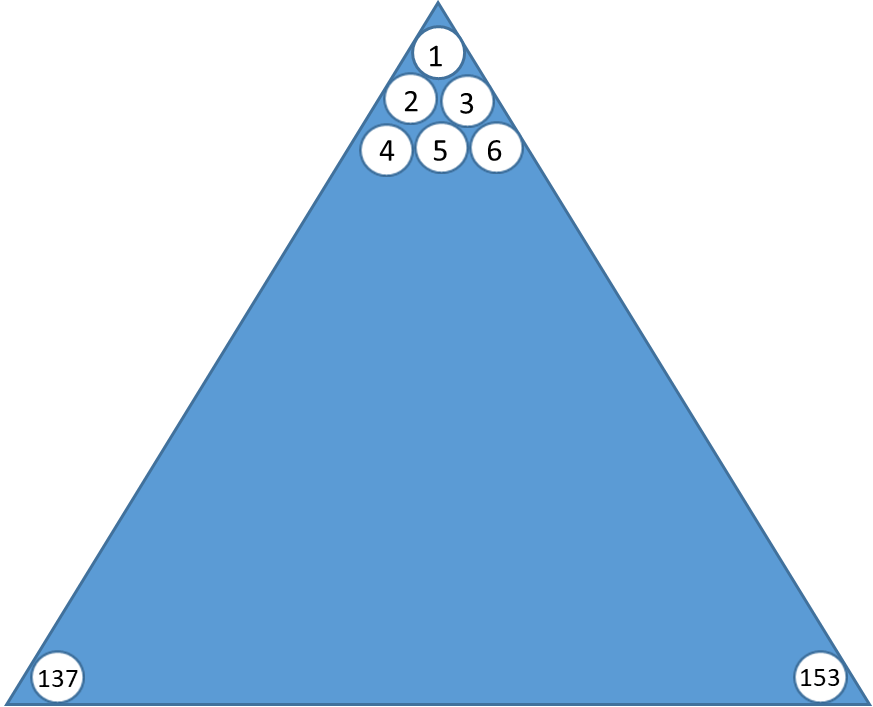 153이란 숫자는 각각의 숫자를 3승한 후 더해도 153이 나오는 매우 특이한 숫자입니다(13 + 53 + 33 = 153). 또한 1부터 5까지의 계승을 더한 합이며(1! + 2! + 3! + 4! + 5! = 153), 1부터 17까지의 숫자를 모두 더한 합이기도 합니다. 또한 삼각형을 만드는 숫자입니다(3, 6, 9…153). 부활 승리를 의미하는 17은 7번째 소수이기도 합니다(17에 대한 자세한 내용은 여길 누르시기 바랍니다). 그러니까 7번째 소수인 17을 1부터 17까지 다 더한 수가 153인데, 7 제자가 예수님의 명령을 쫓아 잡아 올린 물고기의 수 역시 153인 것입니다. 주님은 제자들을 부르실 때 내가 너희로 하여금 사람을 낚는 어부가 되게 하겠다고 말씀하셨습니다(막 1:17). 그리고 누구든지 예수 그리스도를 “영접하는 자 곧 그 이름을 믿는 자들에게는 하나님의 아들들(sons of God)이 되는 권세(요 1:12)”를 주셨습니다. 그런데 흥미로운 것은 ‘하나님의 아들들’이란 뜻의 히브리어 ‘bə·nê(베네) hā·’ĕ·lō·hîm(하엘로힘)’은 구약에 총 7번 나오는 것뿐만 아니라 숫자로 환산하면 153이란 값이 나온다는 것입니다(히브리어와 헬라어는 알파벳마다 고윳값이 있어서 어느 단어든 숫자로 환산할 수 있습니다). 이외에도 정확히 153으로 환산되는 단어 중에는 ‘유월절(Ha Pesach)’과 ‘나는 너의 하나님 여호와니라(Ani YHVH Elohikah)’가 있습니다.